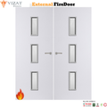 The External Plywood Paint Grade Premium 23G glazed FD30 fire door is simple and stylish while maintaining great functionality.This single 30 minute fire door is glazed with a 400mm x 200mm glass panel 3NOs setting in central door size depentant. You can also choose to have the fire door paint grade, primed, painted (RAL colour) and laminate to your preference, giving it great flexibility and making it ideal for a number of settings. The doors come ready with a square meeting stile and 2 combined heat & smoke seals for the centre, this is included in the price. Handles and additional ironmongery are not included. All veneer strebord-core doors are book matched and made to your order. These doors are sold and certified as a pair 30 minute fire doors.