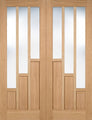A modern design featuring two Coventry doors creating a pair. Each door has three solid and three clear glazed panels to allow light to pass between rooms.