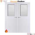 The External Plywood Paint Grade Premium 2G glazed pair FD30 fire door is simple and stylish while maintaining great functionality. This pair 30 minute fire door is glazed with a 700mm x 450mm glass panel and are lipped on all 4 edges. You can also choose to have the fire door paint grade, primed, painted (RAL colour) and laminate to your preference, giving it great flexibility and making it ideal for a number of settings. The doors come ready with a square meeting stile and 2 combined heat & smoke seals for the centre, this is included in the price. Handles and additional ironmongery are not included. All veneer strebord-core doors are book matched and made to your order. These doors are sold and certified as a pair 30 minute fire doors.